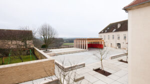 Groupe scolaire et Périscolaire de Pesmes Groupe scolaire et périscolaire / Pesmes (70)Maîtres d’œuvre : BQ+A – Quirot / Vichard / Lenoble / PatronoMaître d’ouvrage : Communauté de communes du Val de PesmesLivraison : 2013Surface : 1750 m2 (réhabilitation + extension)Coût travaux : 1 800 000 € HT1% artistique : Thierry Géhin